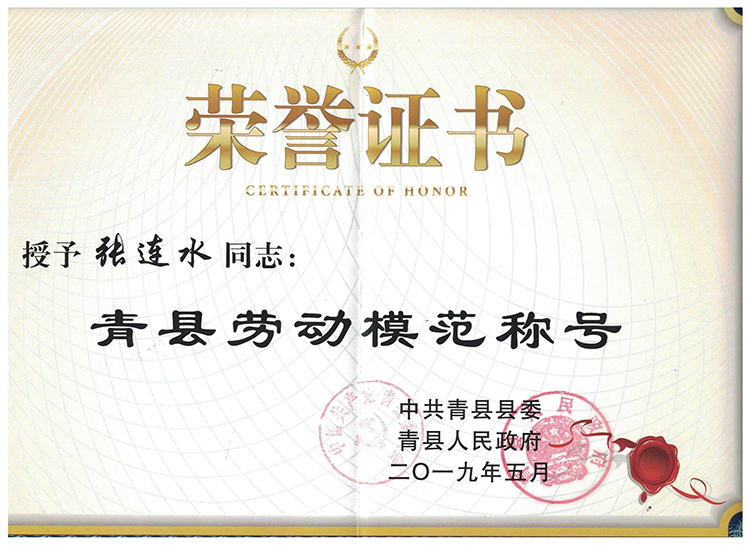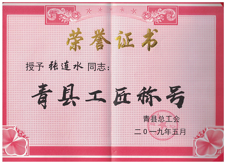 2013年以来,全县各族人民深入贯彻落实习近平新时代中国特色社会主义思想和党的十九大及十九届二中、三中全会精神,积极投身到加快建设创新驱动经济强县的伟大事业中,在推进转型发展、脱贫攻坚、同步小康进程等各条战线上,涌现出一大批品德高尚、爱岗敬业、业务精湛、贡献突出的先进模范人物。为弘扬先进模范人物的时代精神,凝聚和传播正能量,县委、县政府决定,授予张连水同志“青县劳动模范”和“青县工匠”称号。